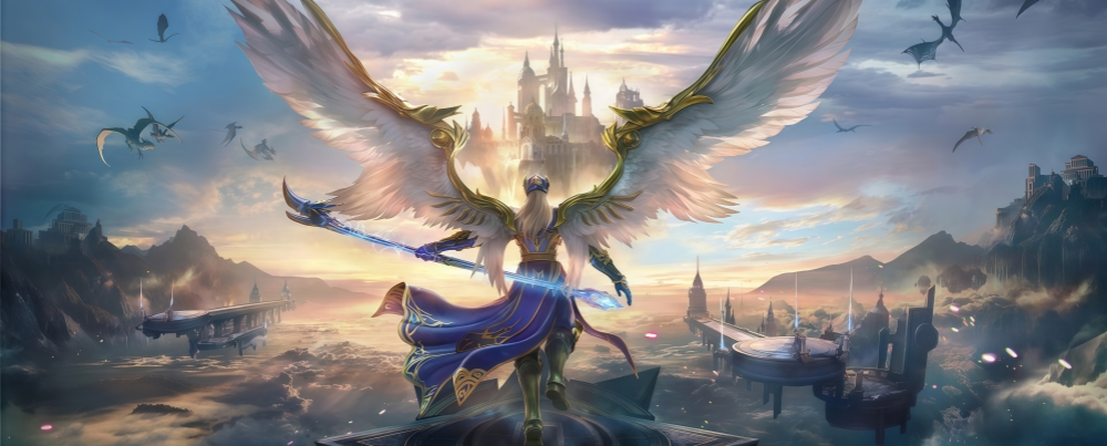 《奇迹MU:荣耀出征》官方海报,战士龙王套装与翅膀